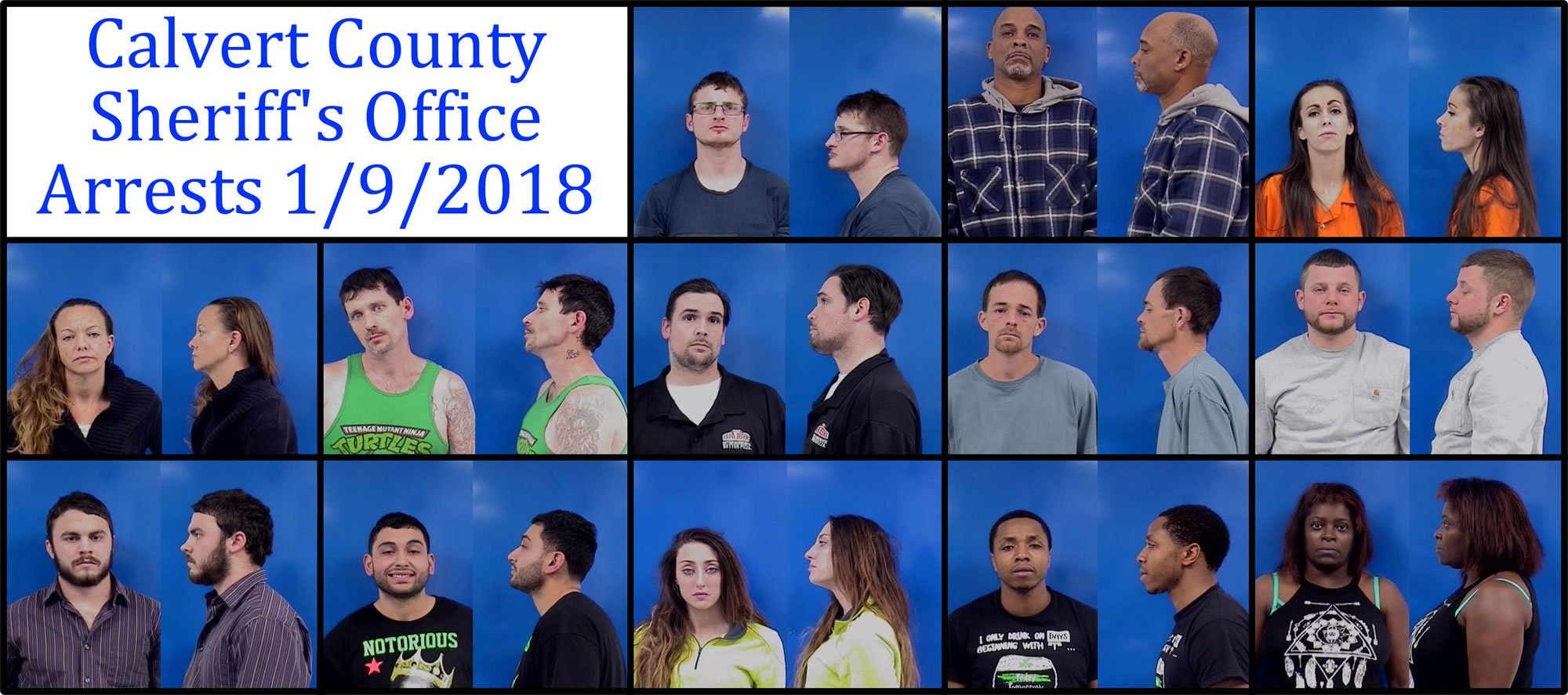Calvert County Sheriff's Office Arrests 1/9/2018 Southern Maryland