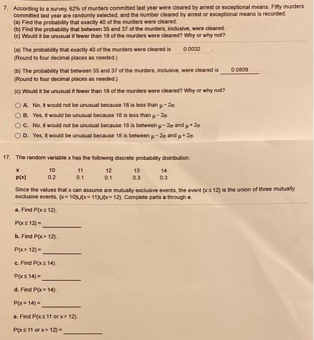 Solved 7. According to a survey, 62 of murders committed