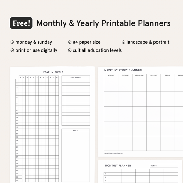 Here you can download all my free content, or donate any amount ☺︎ Free study planning printable pages! You can download it from the link below: I'm emma, a digital creator & organiser enthusiast! Here are several worksheets to help you better plan, prepare and complete your studies!