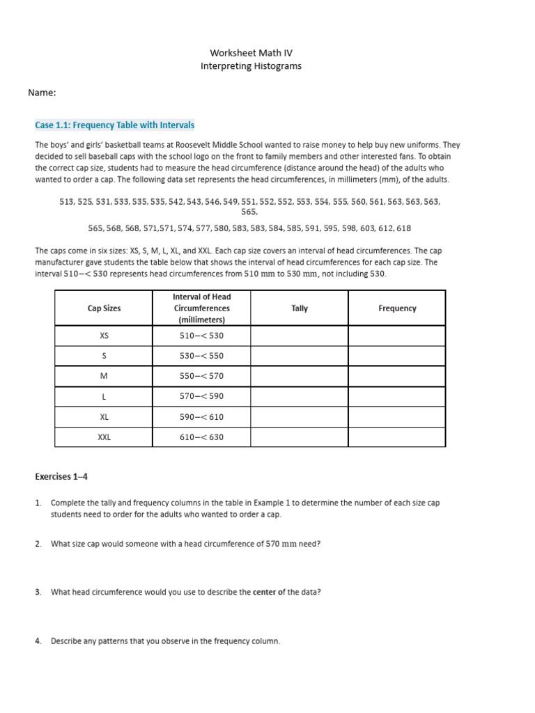 Interpreting Histograms Worksheet Download