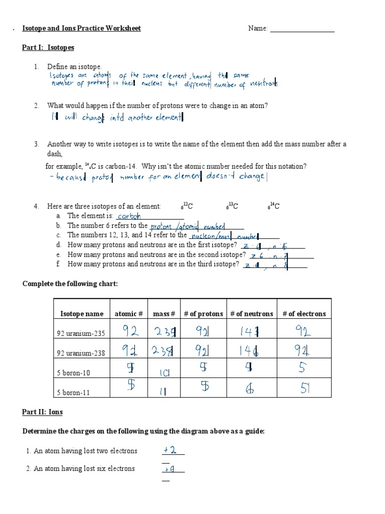 Isotope and Ions Practice Worksheet Part I Isotopes PDF Isotope