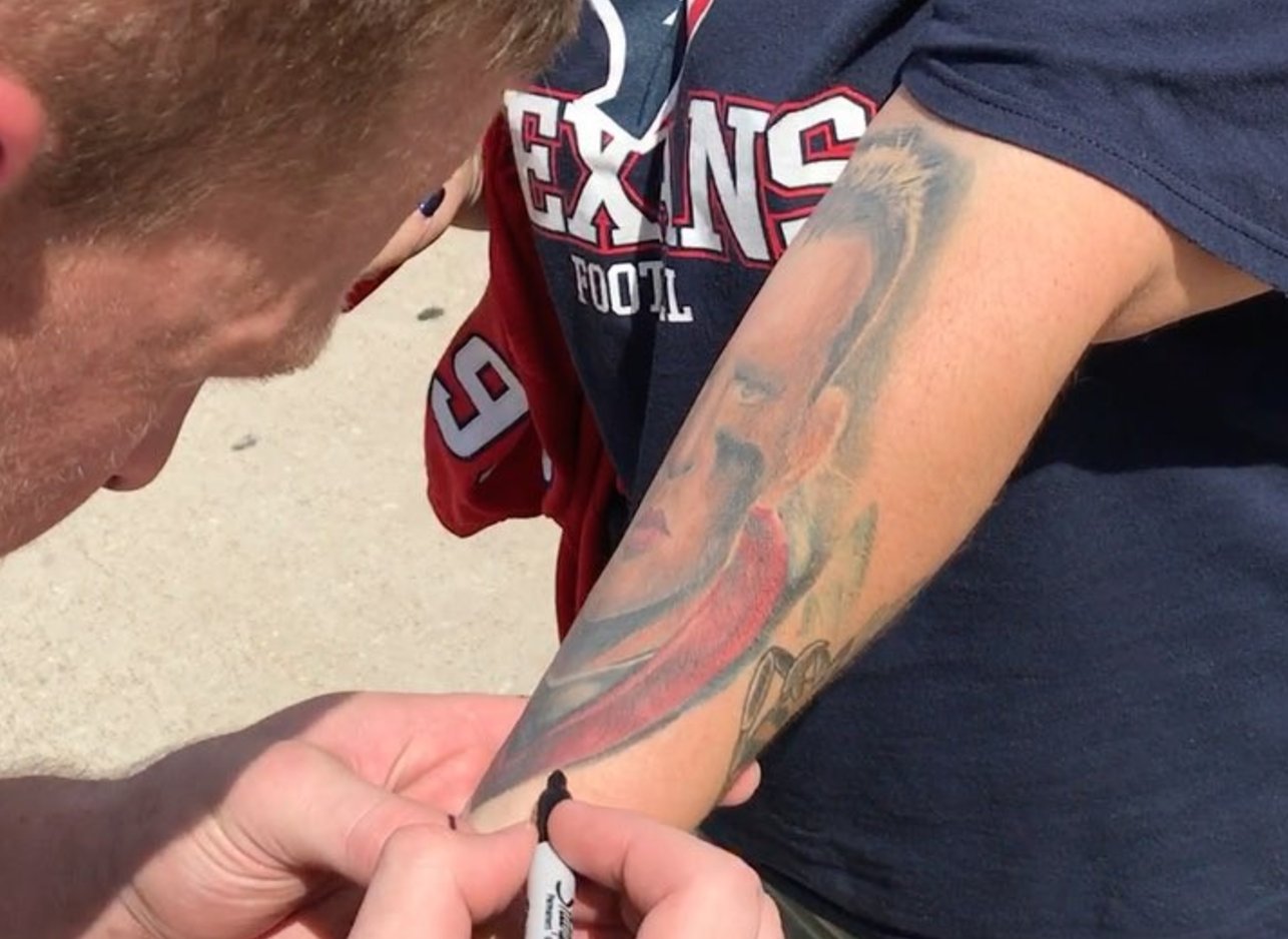 Jj Watt Signs Fan's Epic Watt Tattoo.