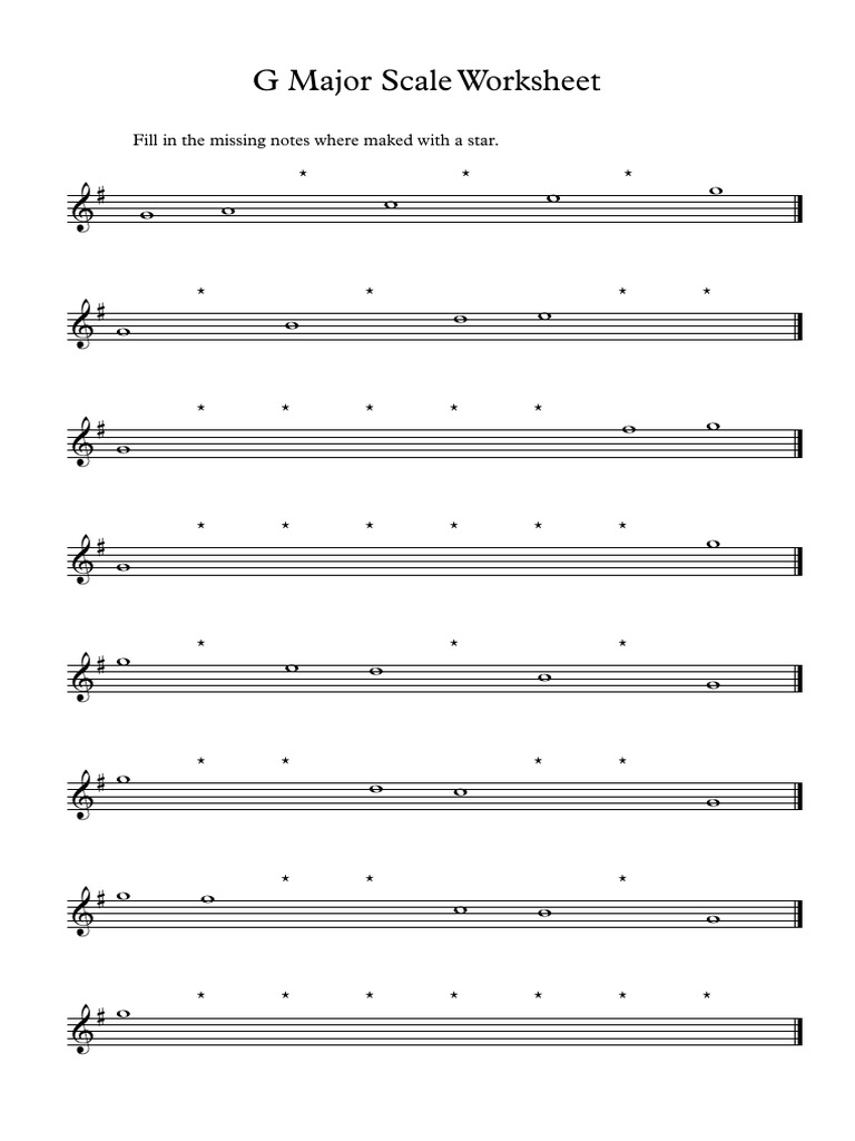 G Major Scale Worksheet PDF