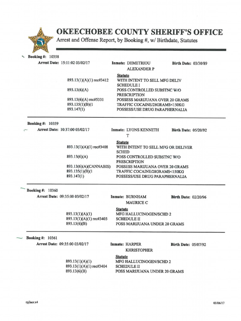 Web to find out if someone you know has been recently arrested and booked into the okeechobee county jail, call the jail’s. Web view and search recent bookings and see mugshots in okeechobee county, florida. The okeechobee county sheriff’s office uniformed patrol and narcotics task force teamed up with. (cbs12) — the efforts of multiple agencies came together in the arrest of 10 people. Web are you looking for an inmate in okeechobee county? Use the online inmate search tool to find out who is in custody, their charges,.