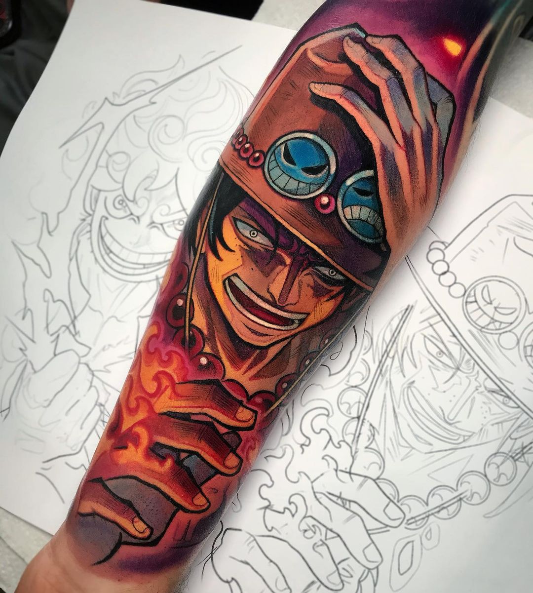 Ace One Piece, tattoo by © Diego Calderon Tatuagens de anime