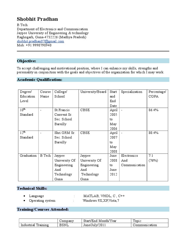 Sho B Hit Resume PDF Computing And Information Technology Science