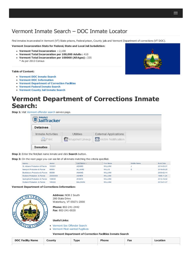 Vermont Inmate Search Department of Corrections Lookup PDF County